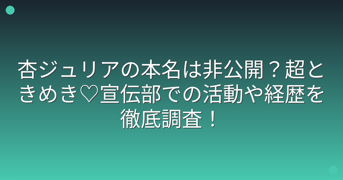 杏ジュリアさんの本名については、現在のところ公式には公表されていないことが分かりました。