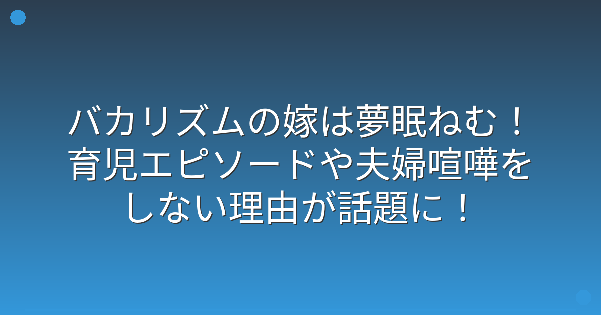 今回は、バカリズムさんの嫁である夢眠ねむさんとの結婚生活や、話題の育児エピソードについてお伝えしてきました。