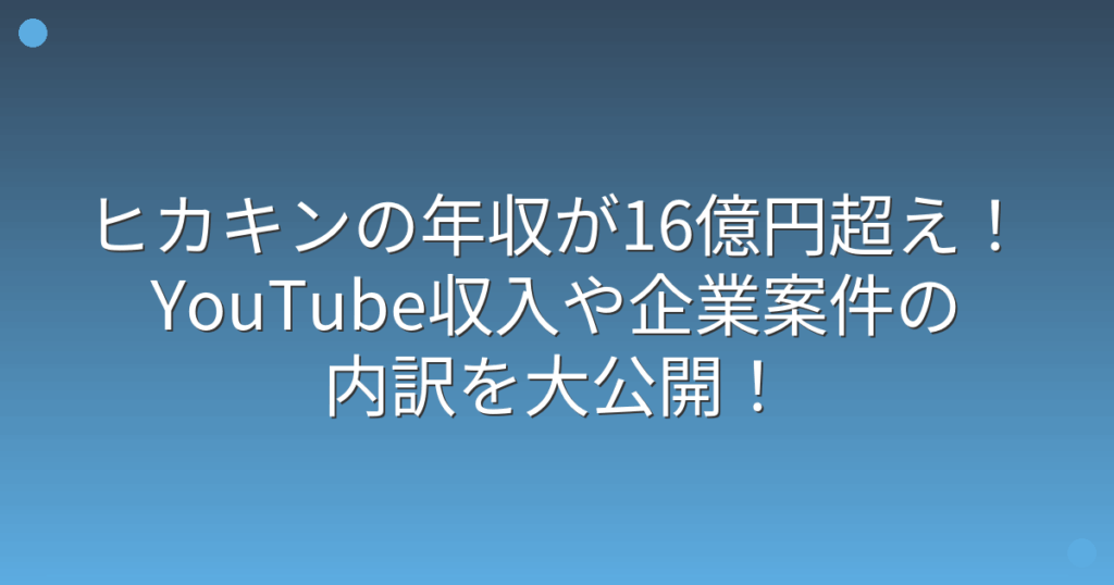 ヒカキンの年収が16億円超え!YouTube収入や企業案件の内訳を大公開!