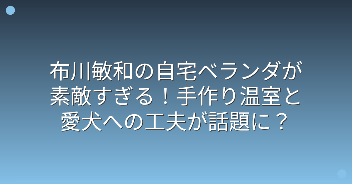 そこで今回は、布川敏和さんの自宅ベランダの詳細や、そこに込められた工夫について詳しく見ていきましょう!
