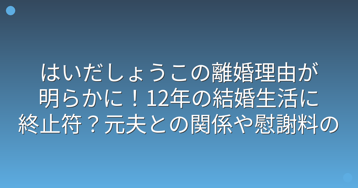 はいだしょうこさんは、2024年1月4日に約12年間の結婚生活に終止符を打ち、離婚を発表しました。