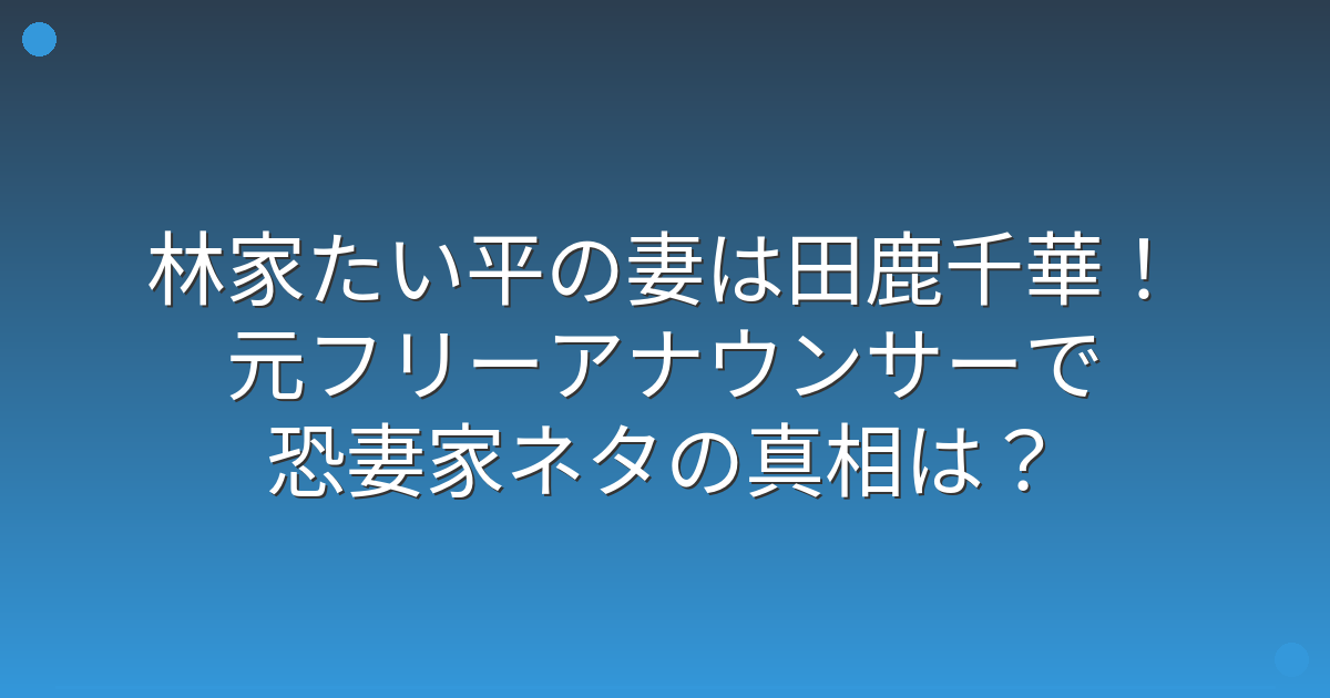 そこで今回は、林家たい平さんの妻・田鹿千華さんの経歴や、恐妻家ネタの真相について詳しく見ていきましょう!