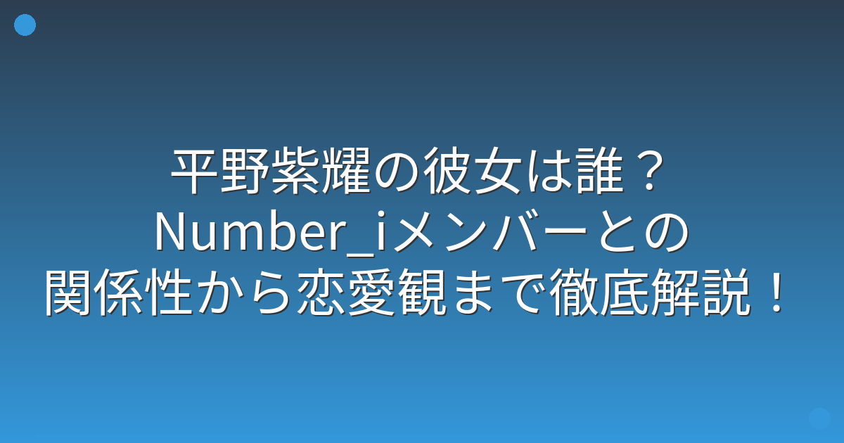 最近、Number_iのメンバーとして活躍している平野紫耀さんの恋愛事情に注目が集まっています。