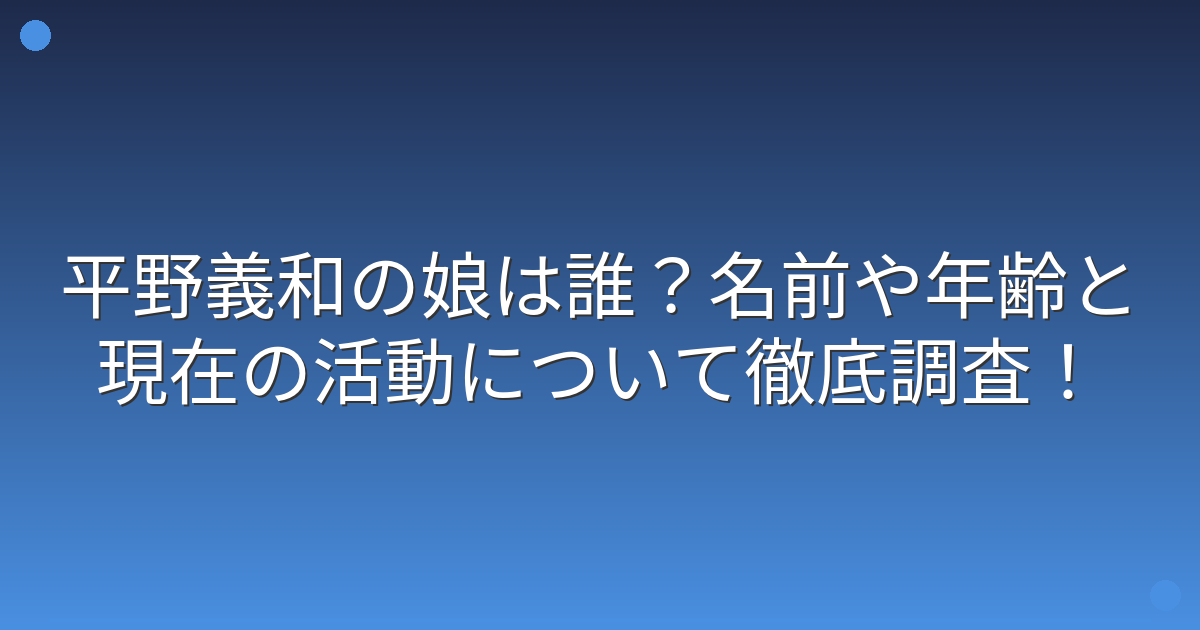 平野義和さんの娘さんについて、まず基本的な情報からお伝えしていきます。