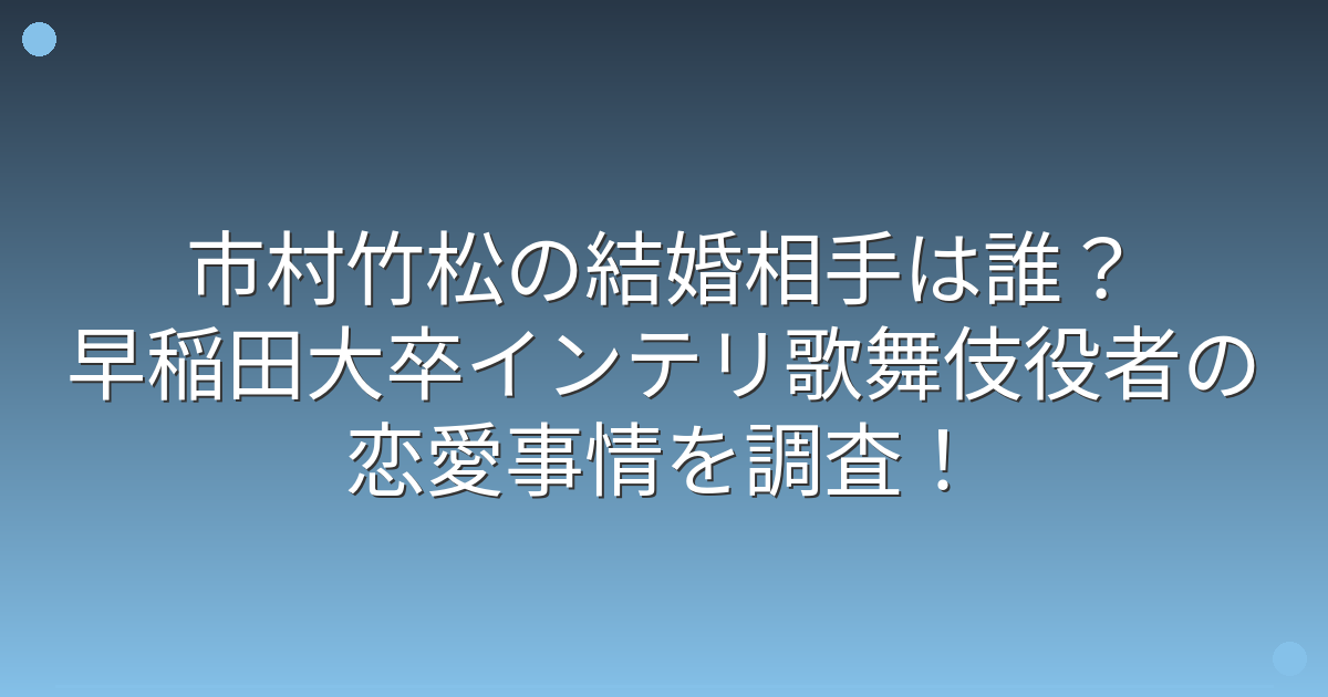 2025年9月時点では、市村竹松さんの結婚に関する具体的な情報は公表されておらず、結婚相手についても明らかになっていません。