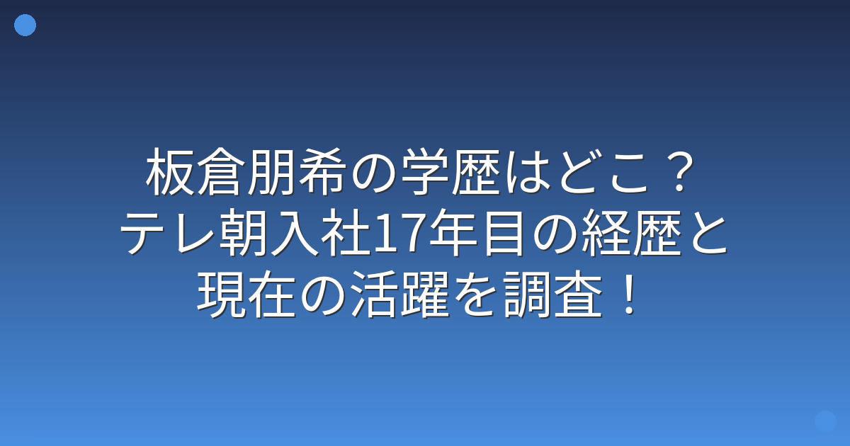 板倉朋希さんも同様に、難関大学を卒業してテレビ朝日に入社したと推測されます。