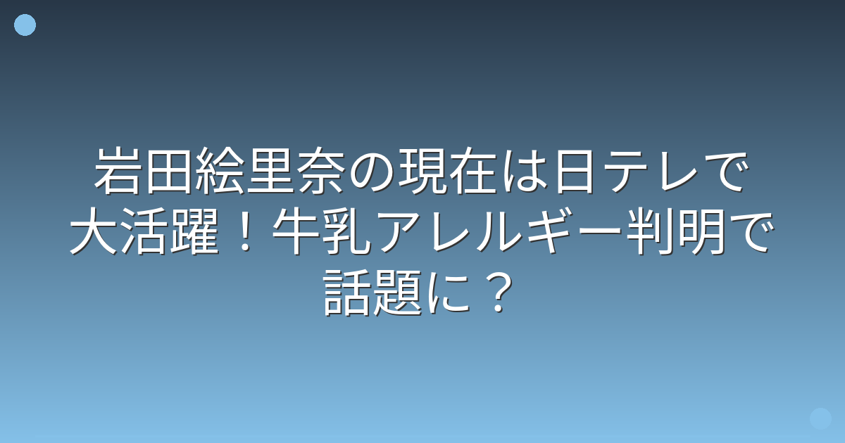 岩田絵里奈さんの現在の話題として最も注目を集めているのが、牛乳アレルギーの発覚です。