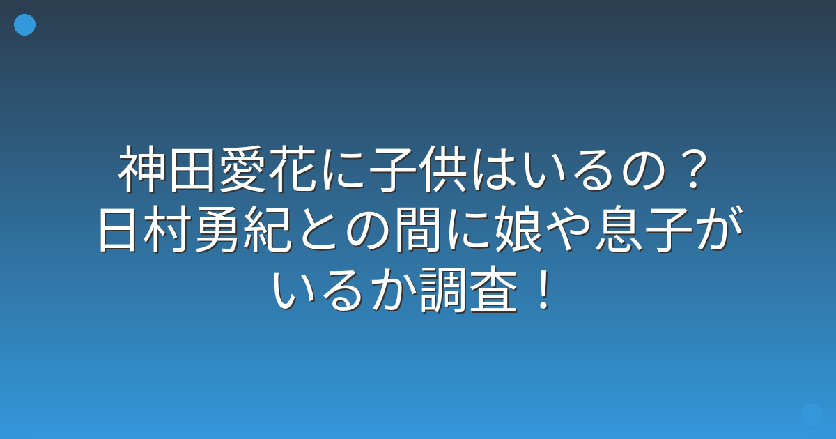 2025年11月現在、神田愛花さんに公式に発表された子供はおらず、日村勇紀さんとの間にも娘や息子はいないことが確認されています。