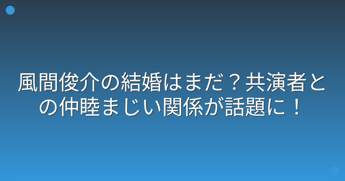 そこで今回は、風間俊介さんの結婚に関する最新情報や、気になるプライベートについて詳しく見ていきましょう!