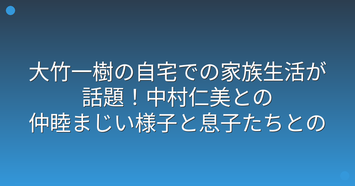 今回は、大竹一樹さんの自宅での生活や、家族との関係についてお伝えしてきました。