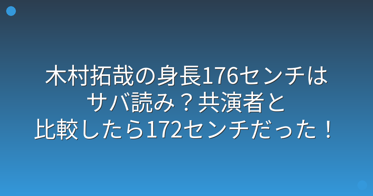 この比較から推測すると、木村拓哉さんの実際の身長は172〜174センチ前後という可能性が高そうです。