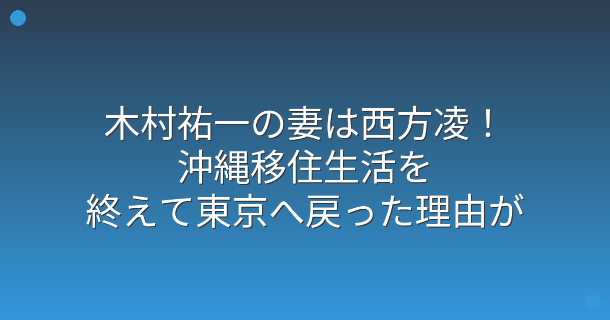 そこで今回は、木村祐一さんの妻・西方凌さんについて、沖縄移住の経緯や現在の状況まで詳しく見ていきましょう!