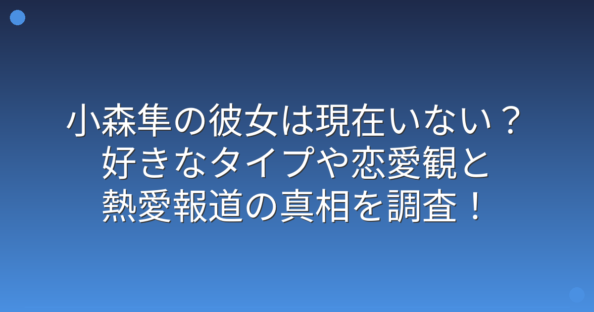 結論としては、2025年末時点で小森隼さんが公式に交際を発表した記録は確認できず、現在彼女がいるという信頼できる情報はありません。