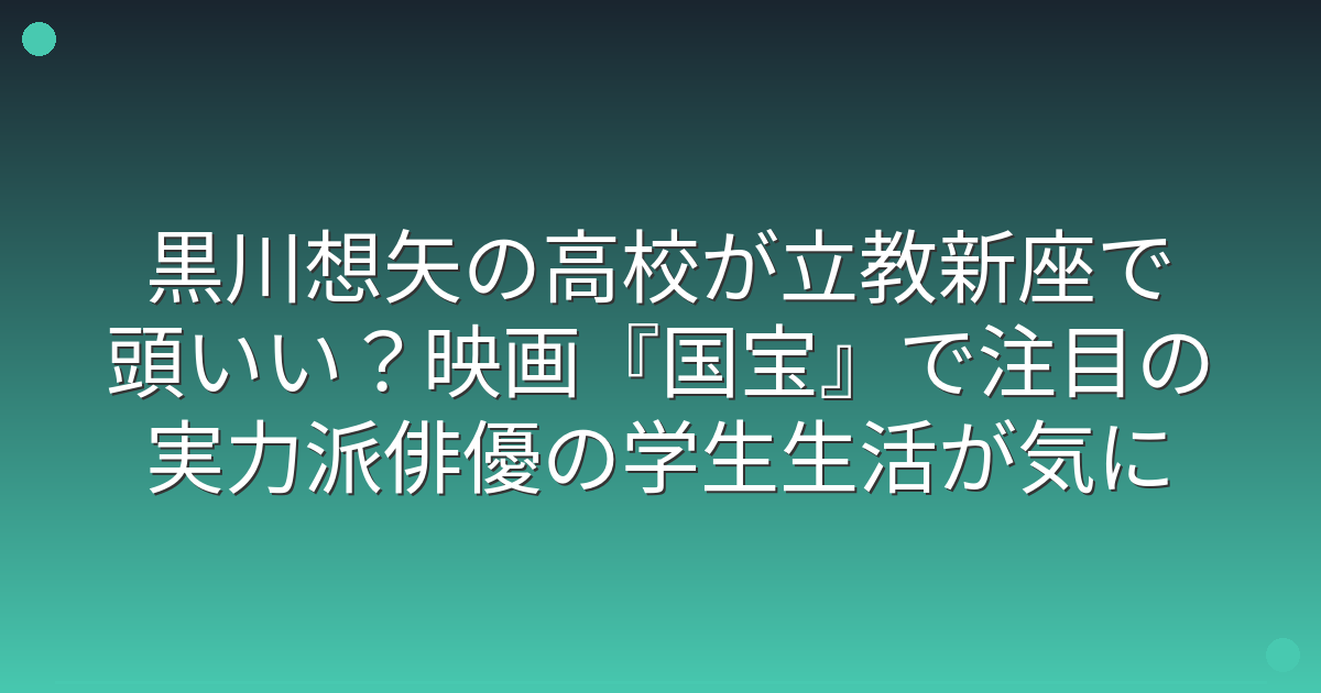若手実力派俳優として注目を集めている黒川想矢さんが、映画『国宝』での演技力で話題になっていますね。