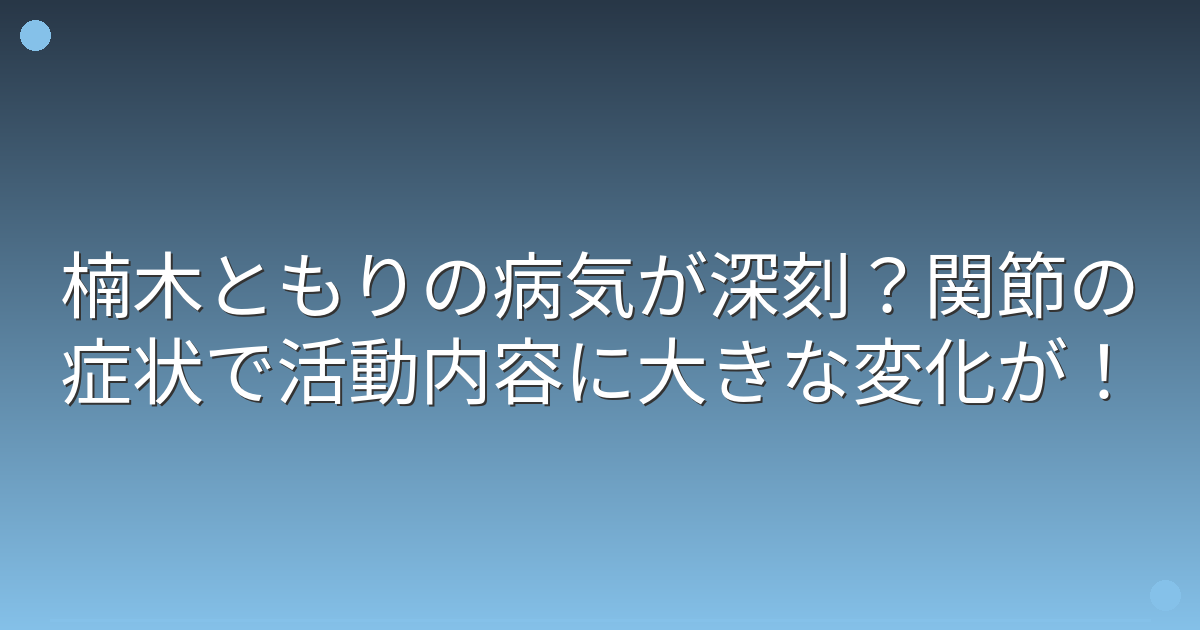 SNSでの情報によると、楠木ともりさんは関節の症状により、踊ることが難しい状態になっているとされています。