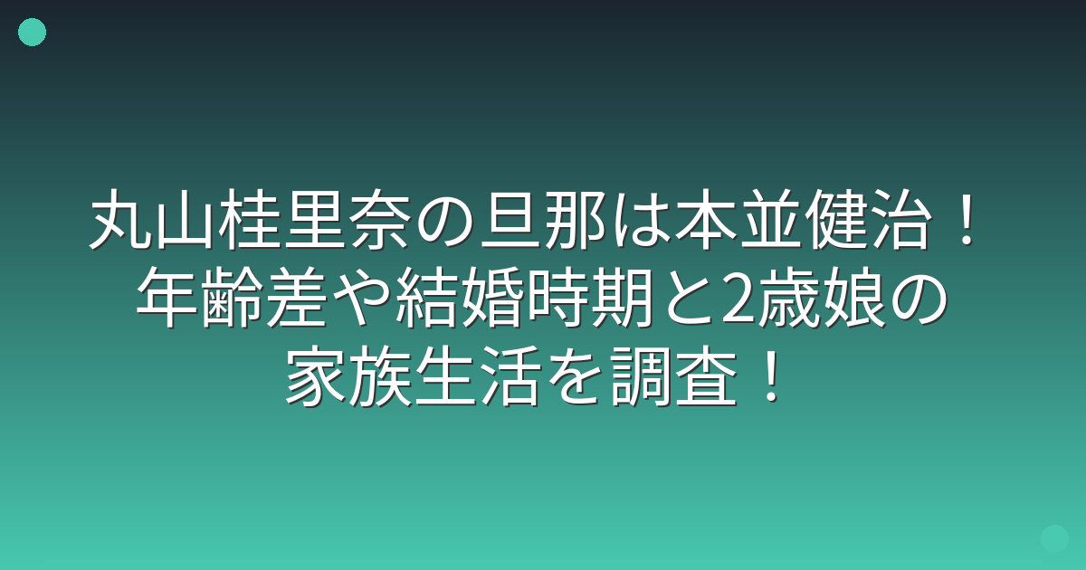 そこで今回は、丸山桂里奈さんの旦那である本並健治さんについて、結婚時期や年齢差、そして2歳の長女との家族生活について詳しく見ていきましょう!