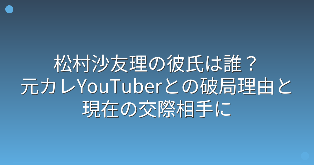 松村沙友理の彼氏は誰?元カレYouTuberとの破局理由と現在の交際相手について徹底解説!