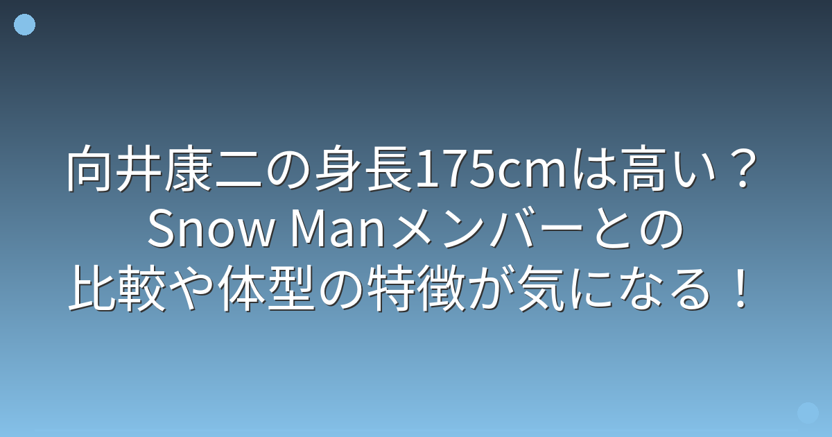 Snow Manのメンバーの中で、向井康二さんの身長175cmは中間的な位置にあたります。