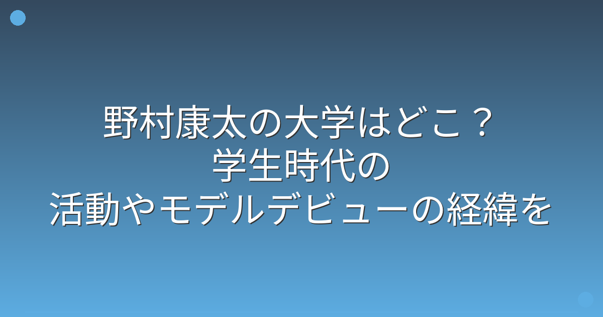 そこで今回は、野村康太さんの大学や学生時代、モデルデビューまでの経緯について詳しく見ていきましょう!