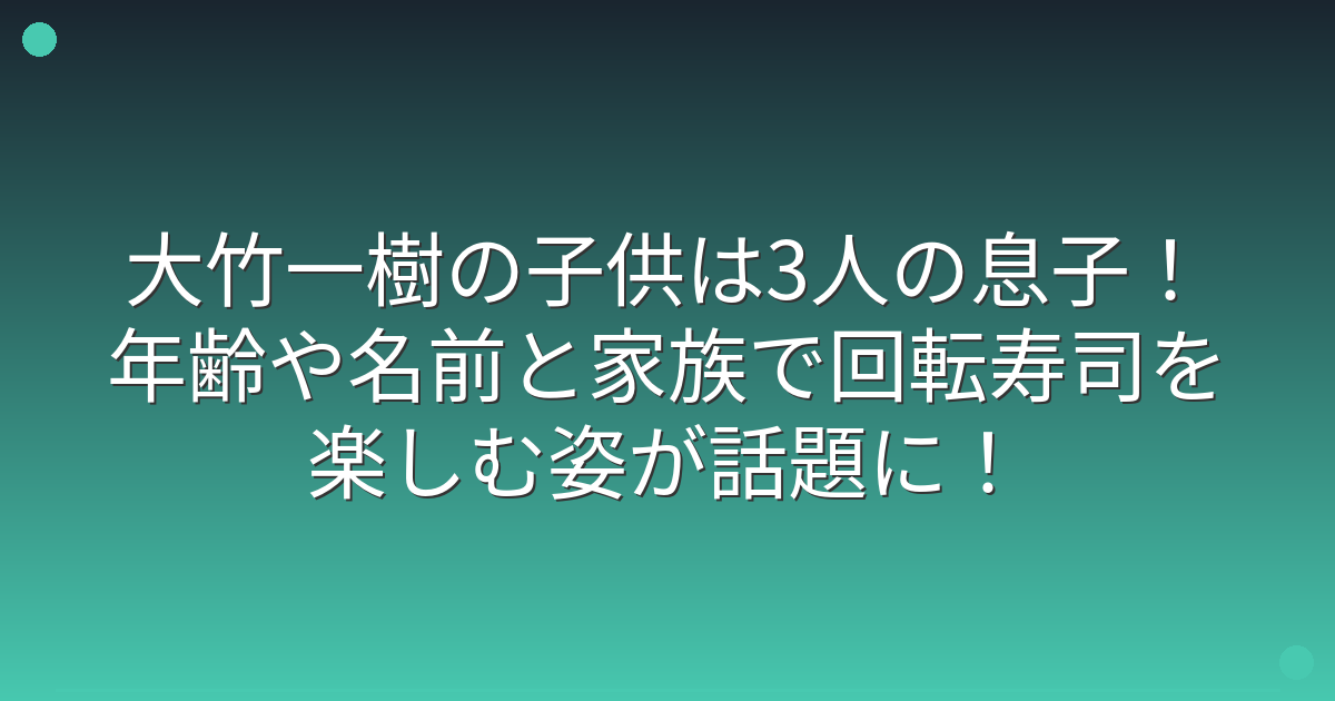 そんな大竹一樹さんの子供について、最近家族で回転寿司を楽しむ姿がSNSで話題になっています。