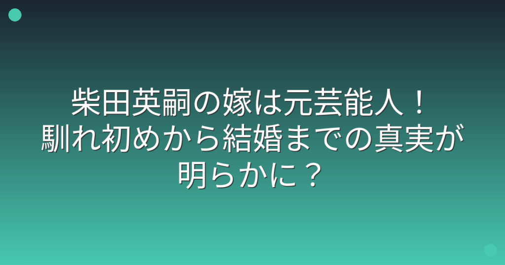 アンタッチャブルの柴田英嗣さんの結婚生活が、最近話題を集めています。 特に、元芸能人である奥様との馴れ初めや結婚生活について、多くの方が興味を持たれているようです。 そこで今回は、柴田英嗣さんの奥様についての詳しい情報や、馴れ初めから現在... -