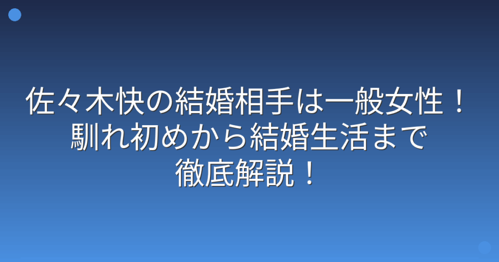 佐々木快の結婚相手は一般女性!馴れ初めから結婚生活まで徹底解説!