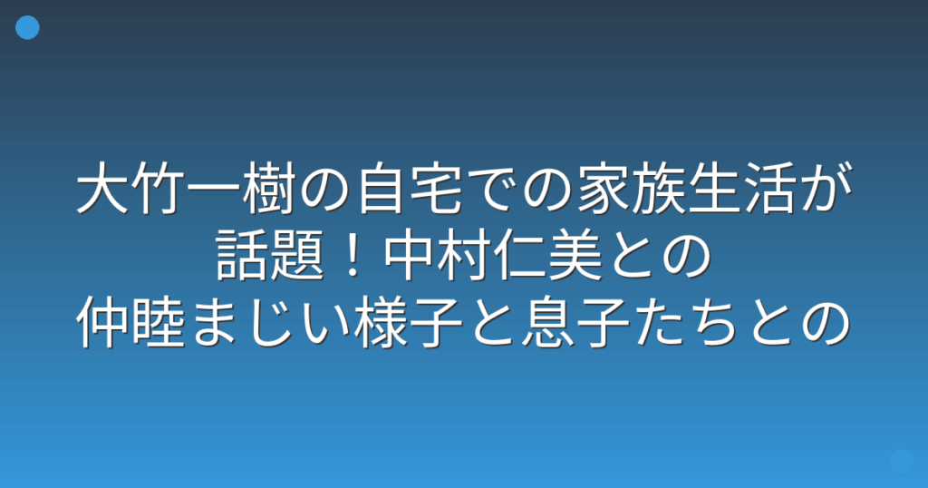 大竹一樹の自宅での家族生活が話題!中村仁美との仲睦まじい様子と息子たちとのエピソードを紹介!