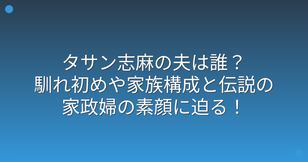 「伝説の家政婦」として大人気のタサン志麻さんが、テレビ番組『沸騰ワード10』での活躍やSNSでのレシピ公開で話題になっていますね。 そんな志麻さんのプライベートについて、特に結婚相手である夫について気になっている方も多いのではないでしょうか。 ... -