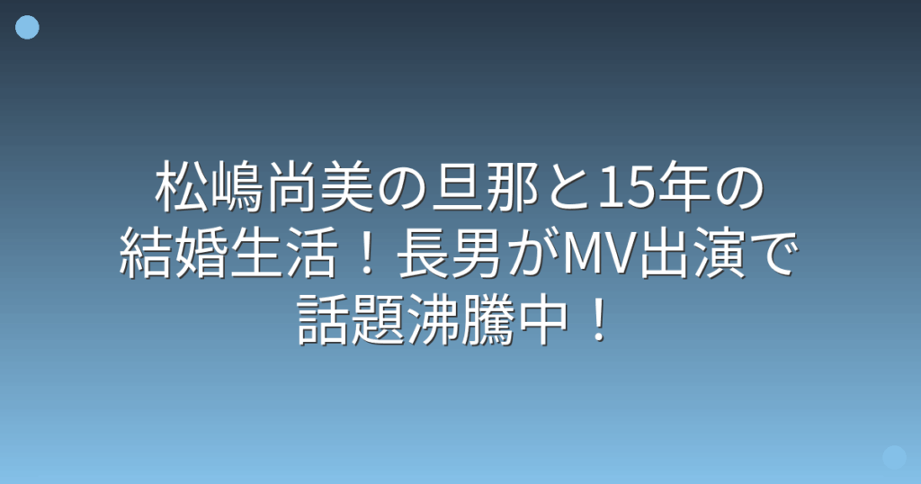 松嶋尚美の旦那と15年の結婚生活!長男がMV出演で話題沸騰中!