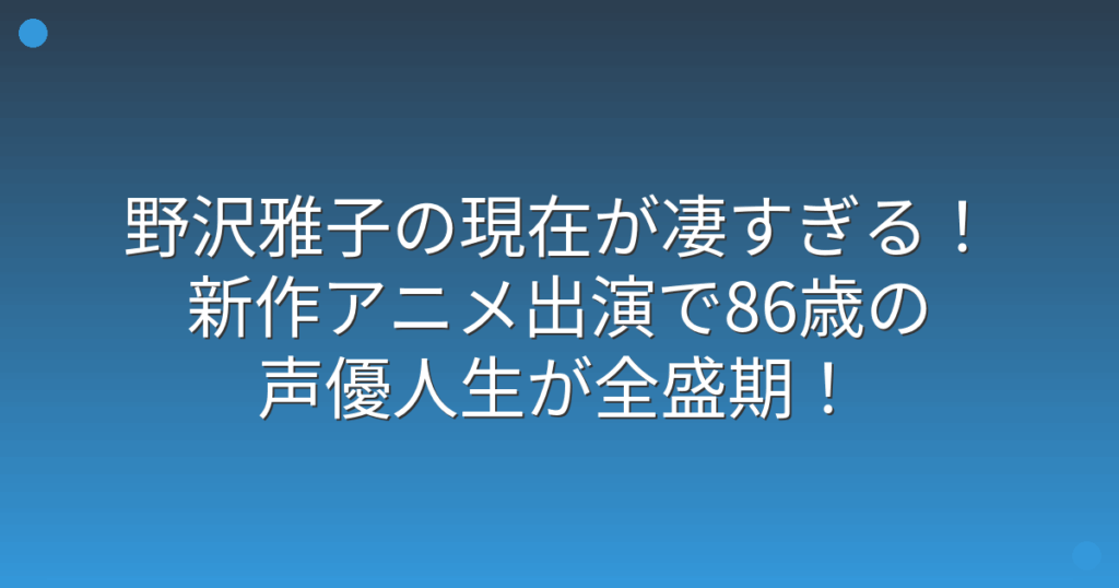 声優界のレジェンド・野沢雅子さんの活躍が、今また大きな注目を集めています。 86歳という年齢を感じさせない精力的な活動で、新たなプロジェクトへの参加が次々と発表されているのです。 そこで今回は、野沢雅子さんの現在の活動状況や最新情報について... -