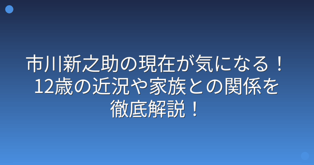 市川新之助の現在が気になる!12歳の近況や家族との関係を徹底解説!