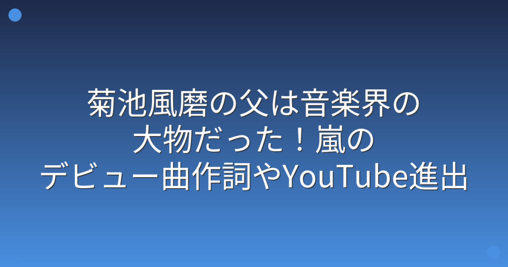菊池風磨の父は音楽界の大物だった!嵐のデビュー曲作詞やYouTube進出で話題に?