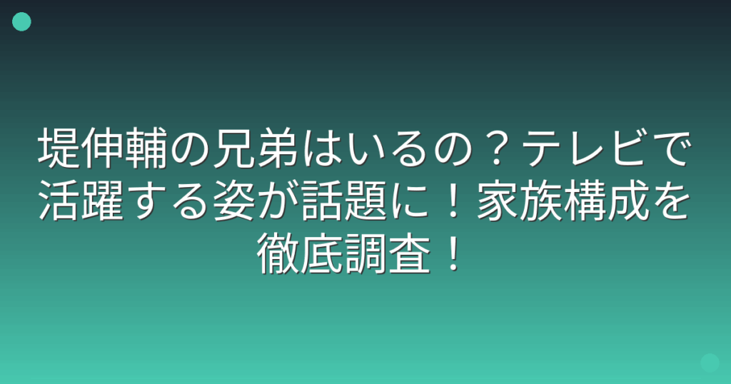 堤伸輔の兄弟はいるの?テレビで活躍する姿が話題に!家族構成を徹底調査!