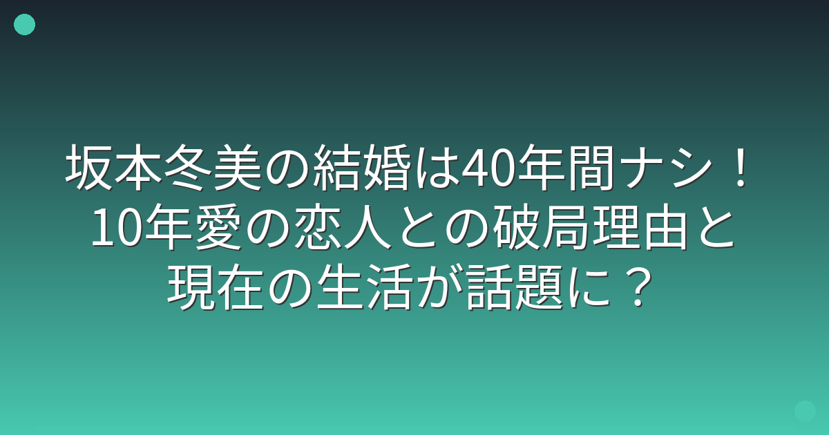 坂本冬美さんは2025年現在も独身を貫いており、過去には10年間の交際相手がいたものの、結婚には至らなかったことが分かりました。