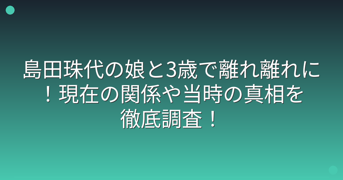 そこで今回は、島田珠代さんの娘さんとの関係や、3歳で離れ離れになった当時の真相について詳しく見ていきましょう!