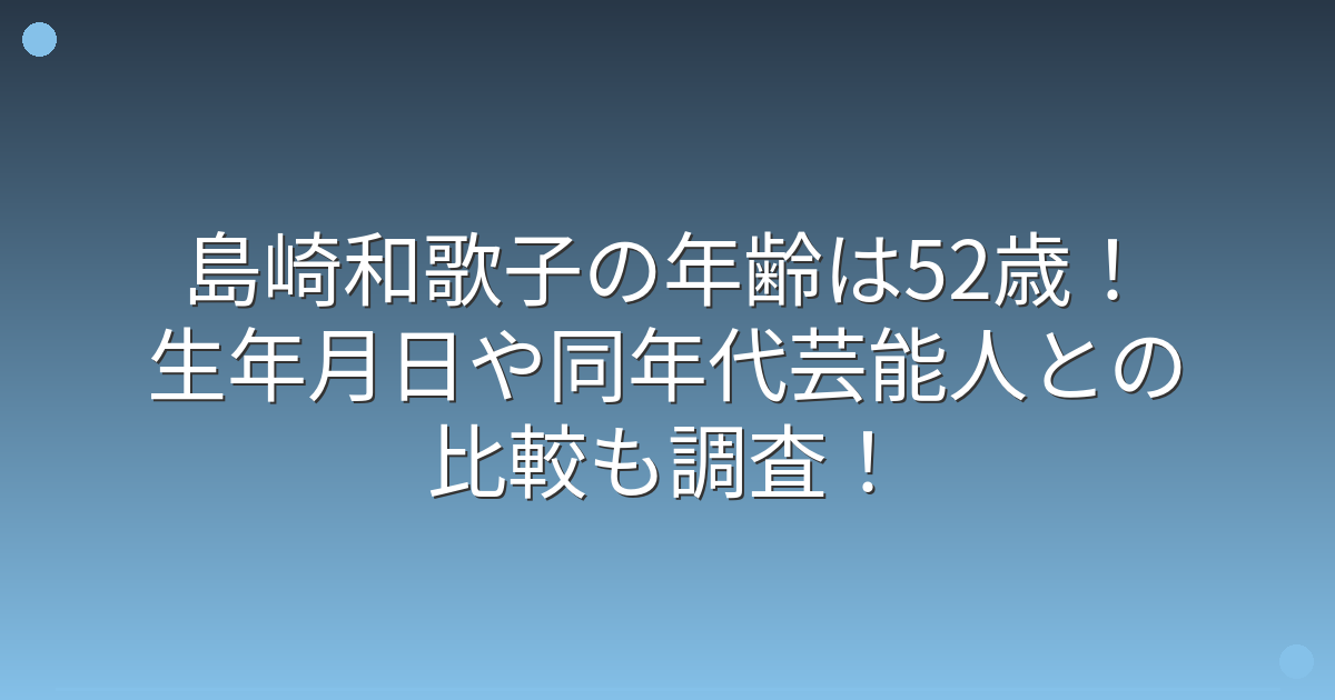 今回は、島崎和歌子さんの年齢や生年月日、詳しいプロフィール、そして同年代の芸能人との比較についてお伝えしてきました。