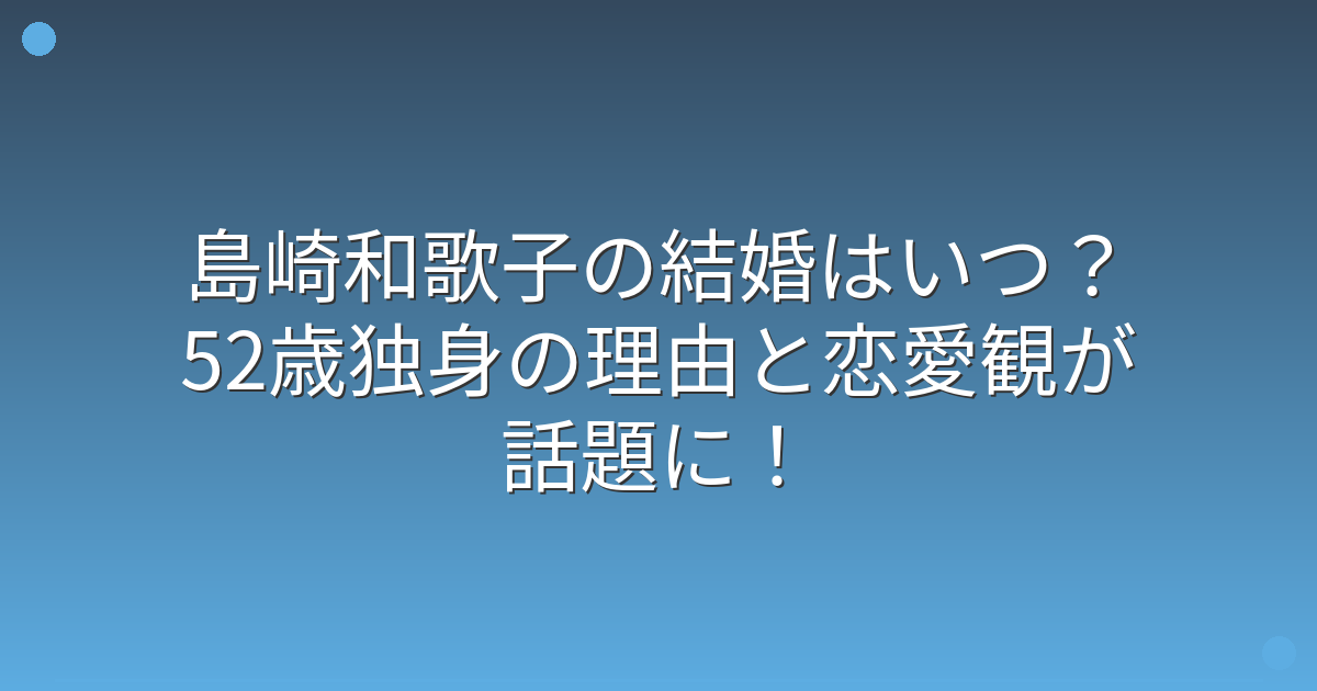 そこで今回は、島崎和歌子さんの結婚に関する最新情報や、独身を貫く理由について詳しく見ていきましょう!