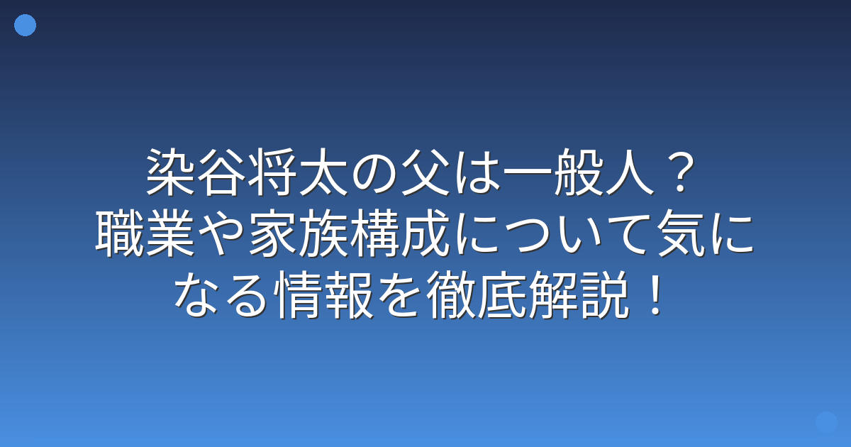調査の結果、染谷将太さんの父親に関する具体的な情報は、2025年9月時点で公式に公開されていないことが分かりました。