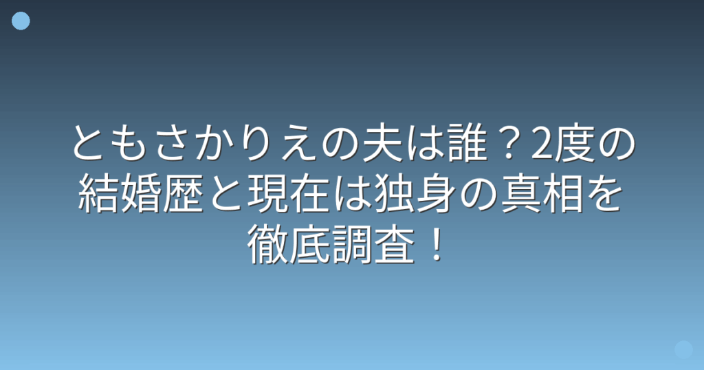 女優のともさかりえさんの夫について、気になっている方も多いのではないでしょうか。 ともさかりえさんは過去に2度の結婚歴があり、現在の結婚状況についても注目が集まっています。 そこで今回は、ともさかりえさんの夫は誰なのか、結婚歴や現在の状況に...