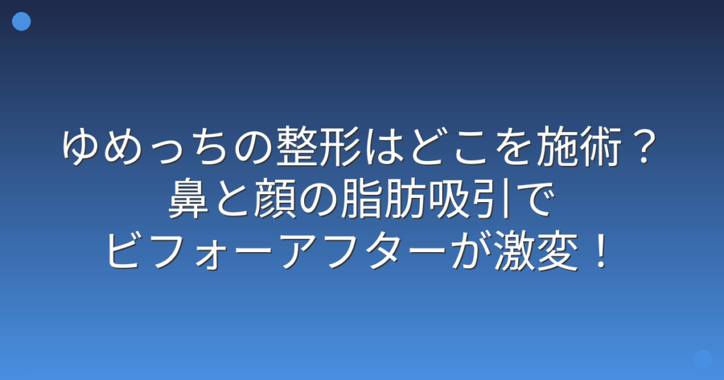 ゆめっちの整形はどこを施術?鼻と顔の脂肪吸引でビフォーアフターが激変!