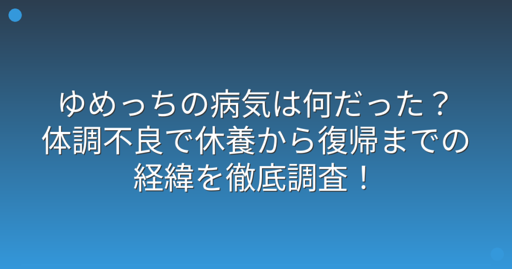 ゆめっちの病気は何だった?体調不良で休養から復帰までの経緯を徹底調査!