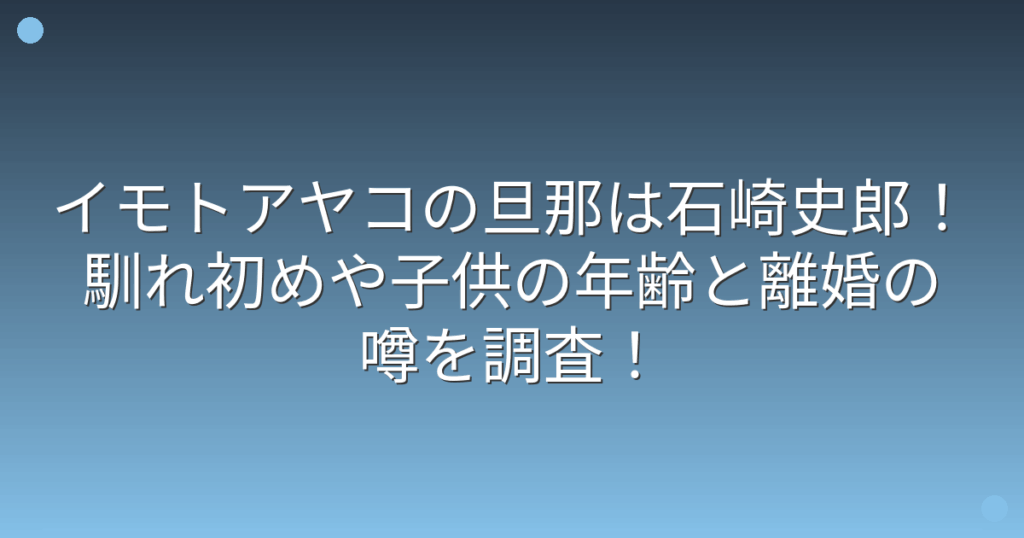 イモトアヤコの旦那は石崎史郎!馴れ初めや子供の年齢と離婚の噂を調査!
