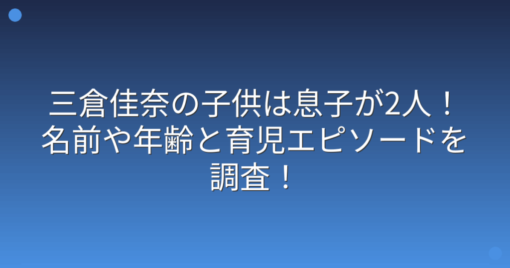 三倉佳奈の子供は息子が2人!名前や年齢と育児エピソードを調査!