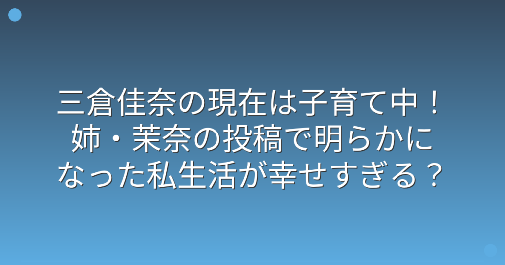 三倉佳奈の現在は子育て中!姉・茉奈の投稿で明らかになった私生活が幸せすぎる?