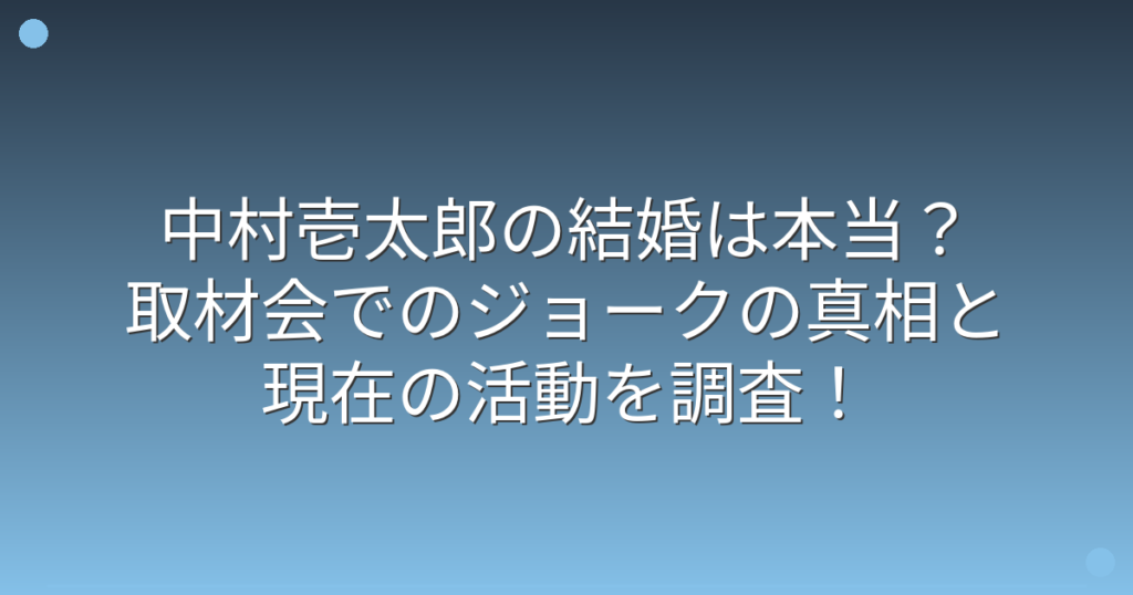 中村壱太郎の結婚は本当?取材会でのジョークの真相と現在の活動を調査!