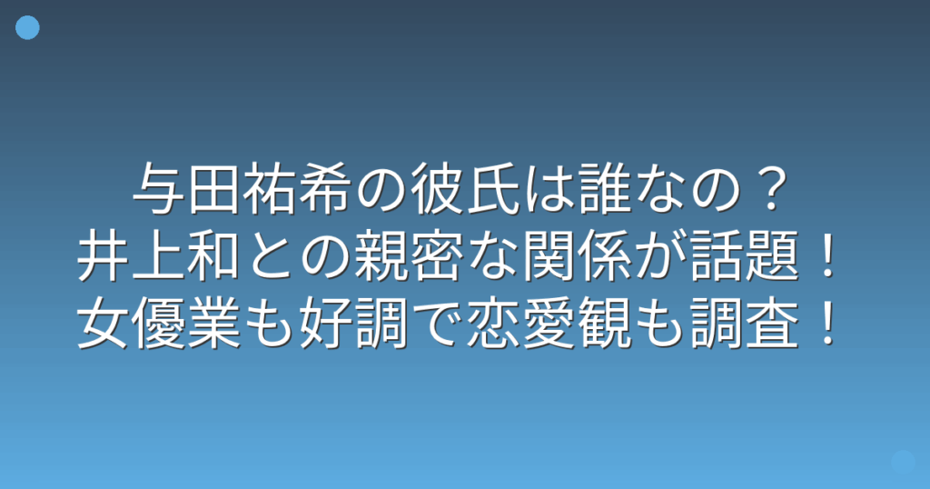 乃木坂46を卒業後、女優として活躍している与田祐希さんの恋愛事情が注目を集めています。 特に最近では、同じ乃木坂46の元メンバーである井上和さんとの親密な関係がSNSで話題になっているようです。 そこで今回は、与田祐希さんの彼氏の噂や、恋愛に関す... -