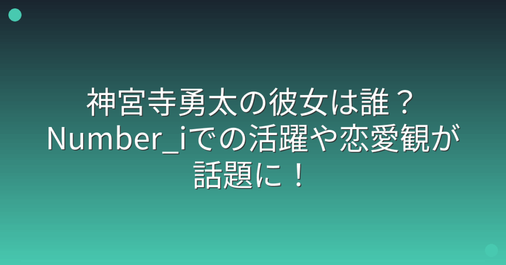 神宮寺勇太の彼女は誰?Number_iでの活躍や恋愛観が話題に!