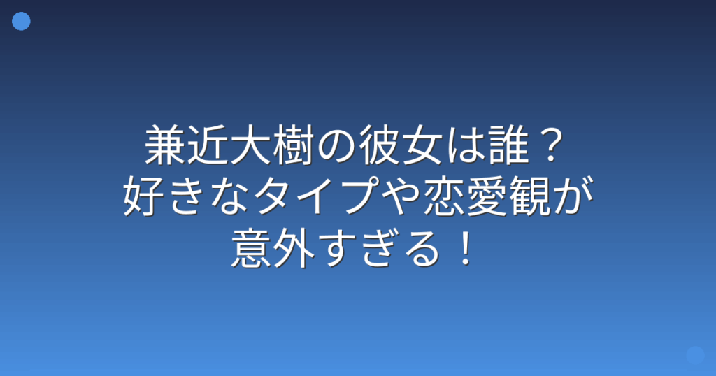 兼近大樹の彼女は誰?好きなタイプや恋愛観が意外すぎる!