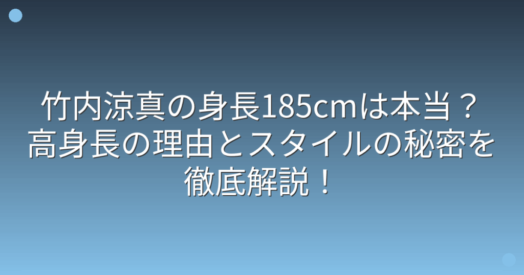 竹内涼真の身長185cmは本当?高身長の理由とスタイルの秘密を徹底解説!