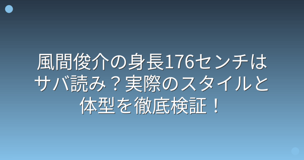 風間俊介の身長176センチはサバ読み?実際のスタイルと体型を徹底検証!